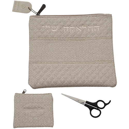 הסט מגיע עם מספריים, כיסוי לטלית, ונרתיק לתלתל .